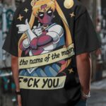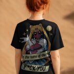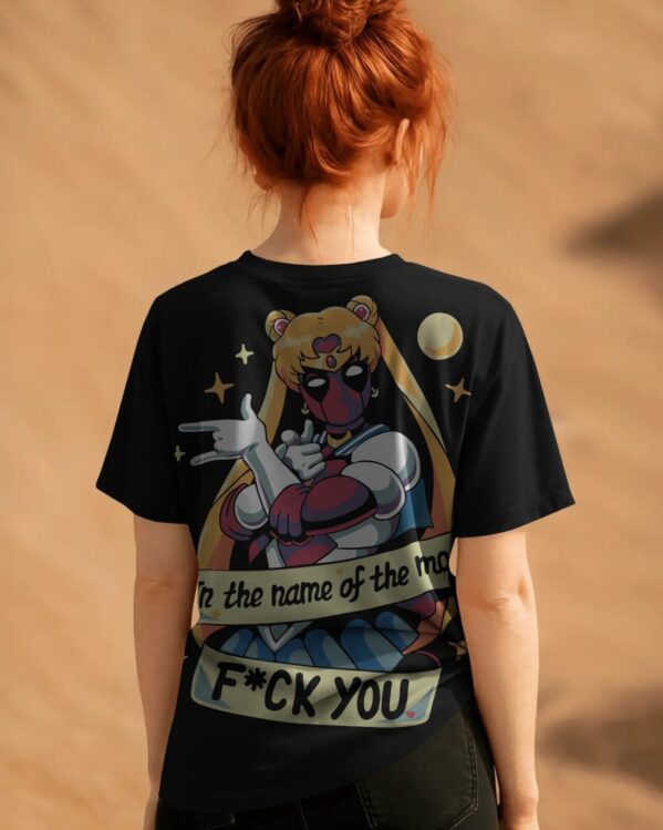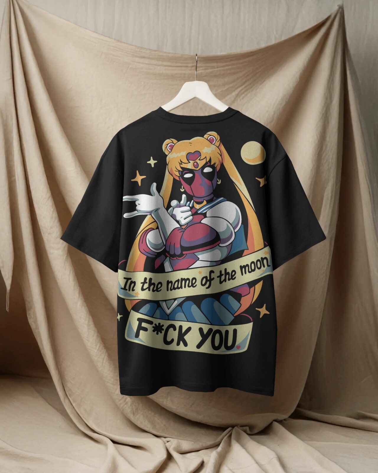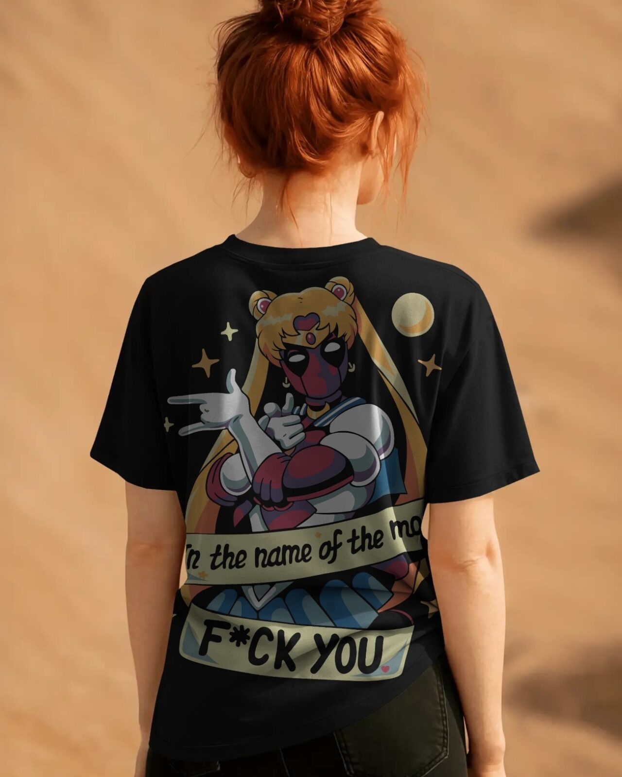 Desata tu lado más irreverente con la camiseta “In the name of the moon”. Un diseño exclusivo que mezcla el icónico estilo de Sailor Moon con el humor sarcástico de Deadpool. Frontal minimalista con frase provocadora y un impactante gráfico trasero a todo color que roba miradas.